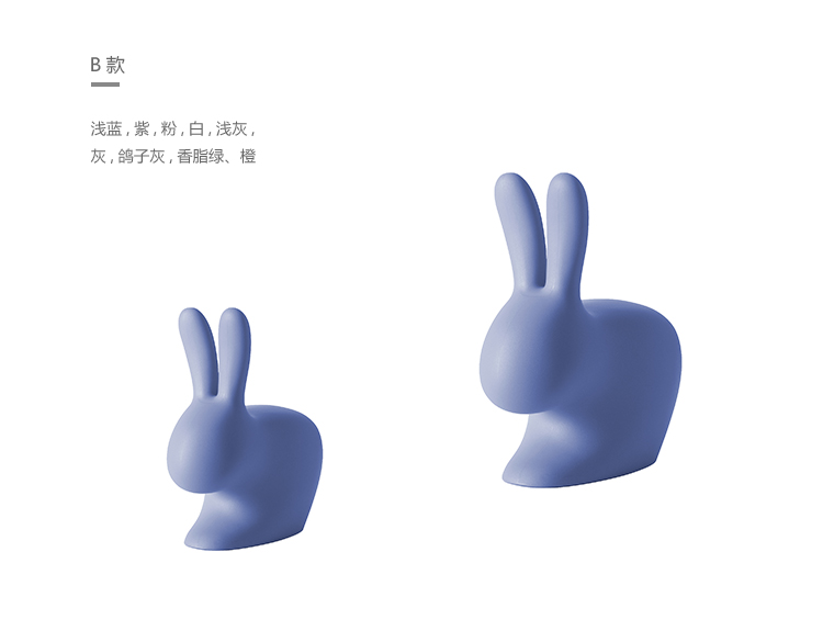 “兔椅(Rabbit Chair)”是Stefano Giovannoni魔术帽的最后一个创作,它成为具有强大的交流媒体力量的产品系列。 兔子的想法来自它的轮廓和椅子的轮廓之间的联系,兔子的耳朵成为椅子的靠背。 它有一个双重变化,适合成人和儿童,还有第三个版本,照明,可以是一盏灯。 年轻人和老年人可以坐下来靠在兔子的耳朵上,或者在对面,骑着它并将手臂靠在耳朵上。 兔子是一种温柔的动物,可爱而温柔。 在西方和东方文化中,它象征着爱和生育,它是一个甜蜜和吉祥的对象,带来了好运和美好的愿望。