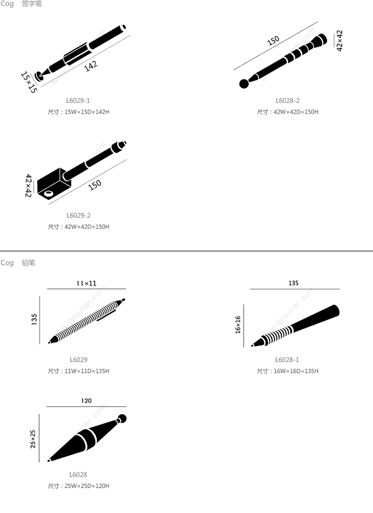 Cog 签字笔 系列尺寸/示意图