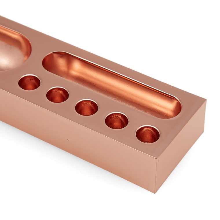 立方体桌面笔盒是由锌合金制成,镀铜和漆完成。与我们的立方体订书机,书桌整洁和钢笔,可作为一套,并以礼品包装。