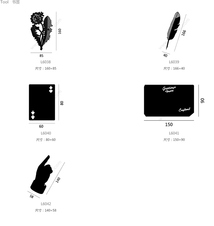 Tool 蒲公英书签 系列尺寸/示意图