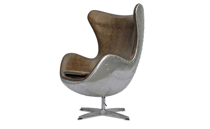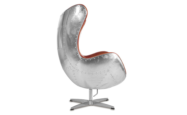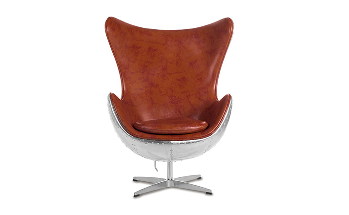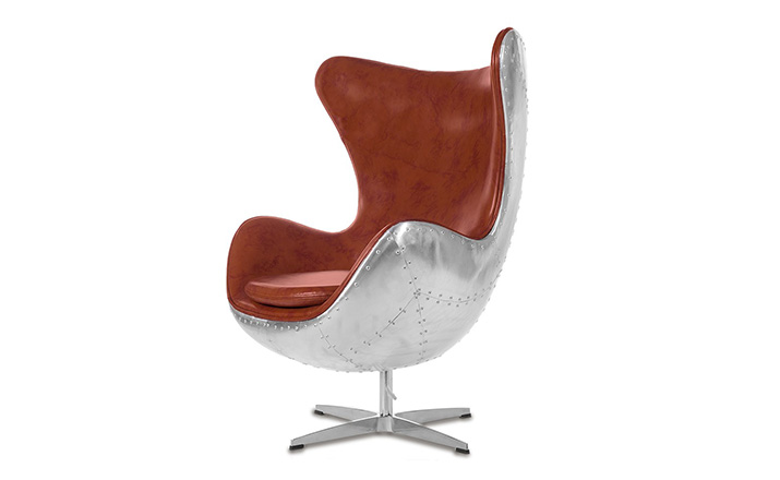 蛋椅(Egg Chair)是为了哥本哈根皇家酒店的大厅以及接待区而被设计出来的,因为当时的机器还不成熟,所有东西都需要经过手工处理,当时Arne Jacobsen在家的车库中设计出蛋椅。蛋椅(Egg Chair)采用玻璃钢内坯,外层是羊毛绒布或者意大利真皮,座垫和靠背大小符合人体结构,内有定型海绵,增加弹性,而且耐坐不变形。整个椅子的布或皮下面都有垫弹性海绵,不仅外观圆滑且更富有弹性,让坐感更加舒适。四星亮光铝脚,鸡蛋椅可以360度旋转(带倾仰功能)。铝合金脚和不锈钢脚,都要达到镜面效果,光亮照人,加上精心设计的椅脑与扶手,两边对称相应,配上脚踏,更具人性化。