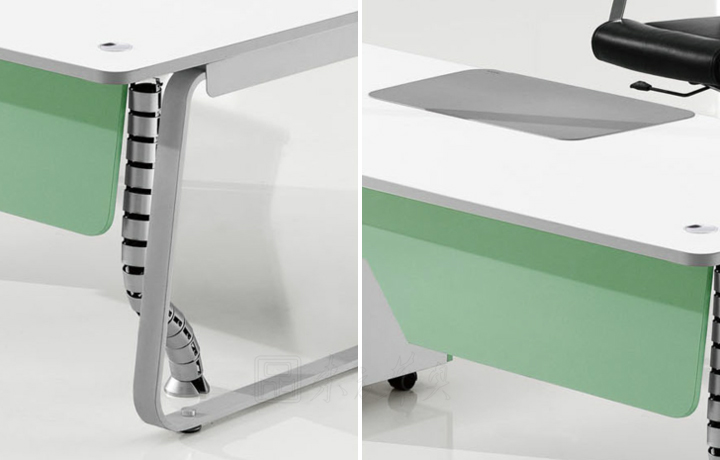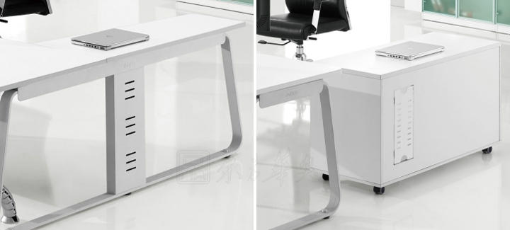※  上图为副台款式,左图为平接副台,有效增加办公空间,配有钢脚直接上线功能,台面下带有过线槽。