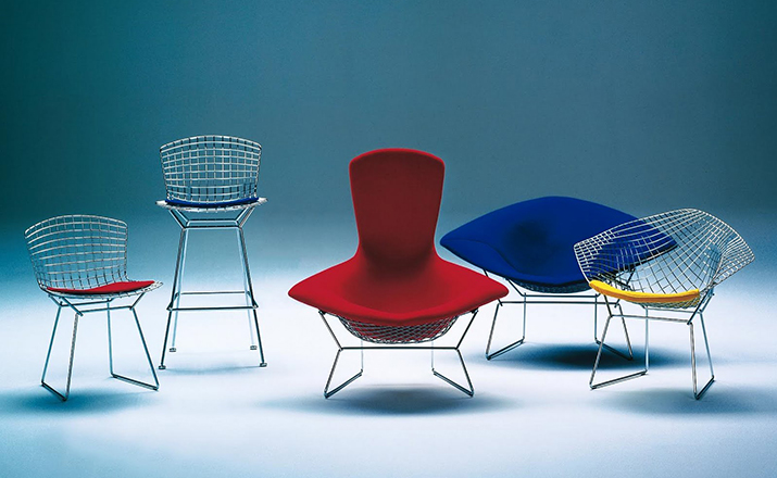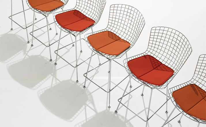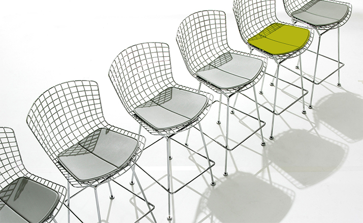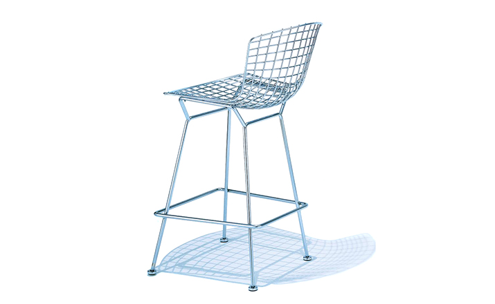 bertoia stool(伯托埃凳)是美国设计师伯托埃设计的,1950年,Harry Bertoia尝试用钢枝制造出结实、轻便而又经济的椅子。1952年,他通过弯曲的金属棒来设计出这张极具创意的伯托埃吧椅(Harry Bertoia Barstool),这张椅子适用与餐厅、酒吧、高档会所等地,利用了金的外形给椅子赋予了现代感,因为生产简单、材料简便,时候大规模的生产,非常适用于商业空间,这或许就是设计的力量可以改变 经济结构吧。