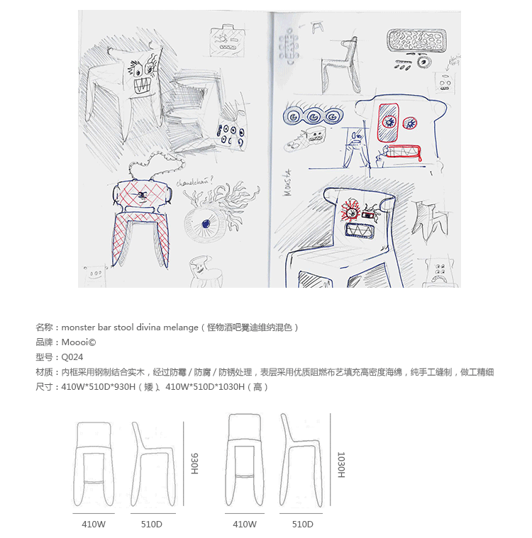 创意家具 - 坐具|吧椅/凳子|办公家具|设计师家具|怪物酒吧凳迪维纳混色