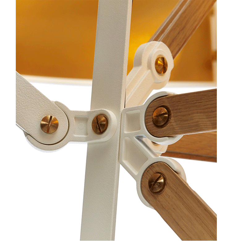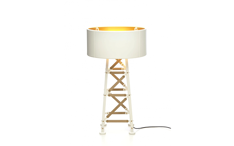 "The Construction lamps are inspired by metal factory construction,electricity poles and constructive elements. This collection, like other designs from Joost, originate from his inventiveness and curiosity combined with expert skills and industrial tools. He started playing with the tools and bolts present in his giant workshop and ended up constructing and creating a new, exciting design!Joost van Bleiswijk was born in Delft and graduated from Design Academy Eindhoven in 2011. Since then, he's mainly working on his own collections. In addition to his own work, Joost designs for top companies worldwide and his pieces have been featured in international publications. Joost's works and collections are exhibited and sold worldwide at galleries and museums.Construction lamps feature a die cast powder-coated aluminum frame in your choice of white or black. White lamps are offered with wood slats. The small size is offered with a push+hold dimmer while the medium & large sizes are offered with a slide dimmer. Includes 9.8 feet of black cord. Medium and large lamps have adjustable lamp holders. UL listed."
