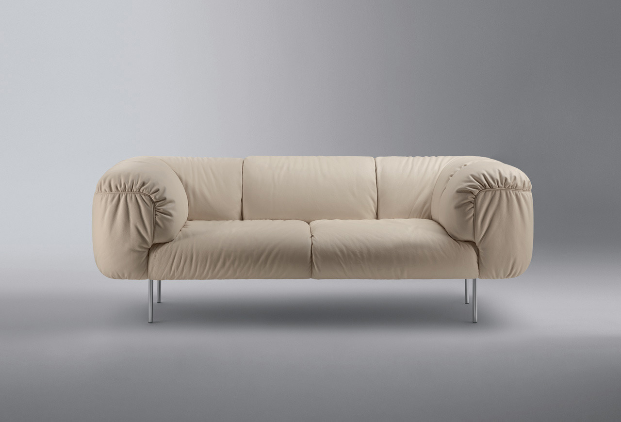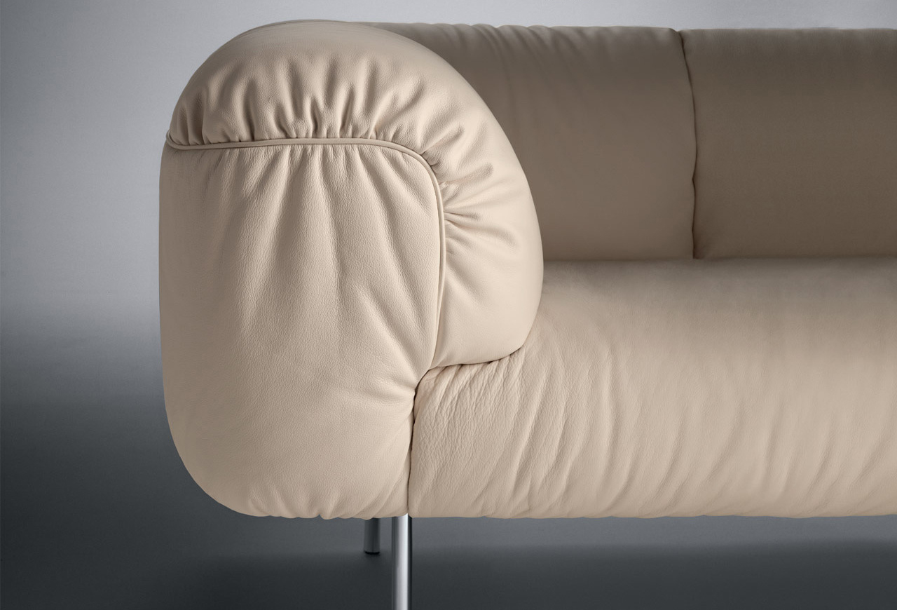 由意大利设计师Cini Boeri为当地家具品牌Poltrona Frau设计的软沙发Bebop,有两座及三座:Bebop 2-seater Sofa(比波普双座沙发)、Bebop 3-seater Sofa(比波普三座沙发),简洁圆润的设计线形,天鹅绒般柔软的舒适坐垫,底座和靠背框架采用山毛榉木,扶手则为白杨木,再覆以Pelle Frau皮革,沙发腿为镀铬钢管,看上去简洁高贵,优雅低调,关键是放在哪个环境下都不突兀,速配率超高。