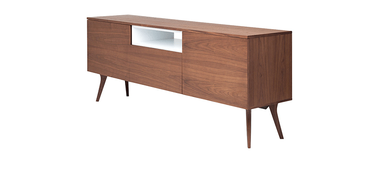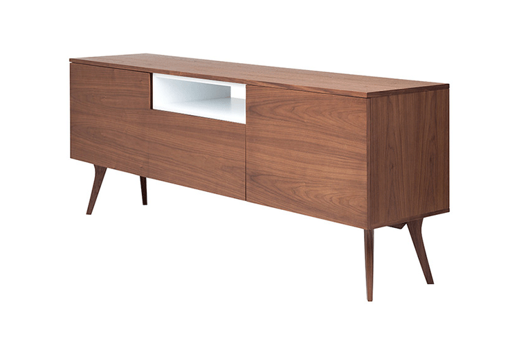 carson buffet(carson柜)是Kardiel公司制作的经典实木家具,设计可爱有个性,自然、朴素的外观。它具有美国胡桃木单板框架和脚架。其开放的区域包括一个有明亮的白漆架子,形成鲜明的对比。Finn Juhl和 Arne Vodder 最先尝试胶木和天然木的组合运用。这是大胆的创新,他们结合传统的新鲜的新兴技术与现代主义的概念。制作采用精选MDF板基材胡桃木或水曲柳木皮贴面、胡桃实木或水曲柳实木脚架、环保净味油漆喷涂,做工精湛。
