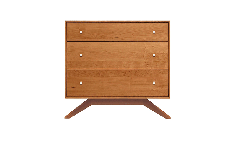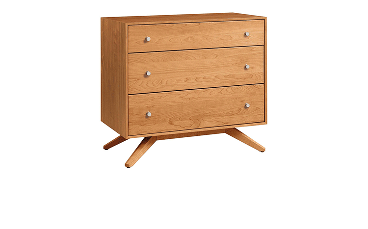 astrid 3 drawers dresser(阿斯特丽德3抽梳妆台)是Copeland Furniture公司astrid实木梳妆台系列之一,宽大的八字形脚架非常吸引人注目,制作并非易事,它其实是一个大工程,同时能引发无限期望和激情,3个平滑抽屉,可以给与提供许多存储空间。制作采用精选MDF板基材、进口美洲胡桃或水曲柳或枫木皮贴面、实木脚架、环保净味油漆喷涂、做工精湛。