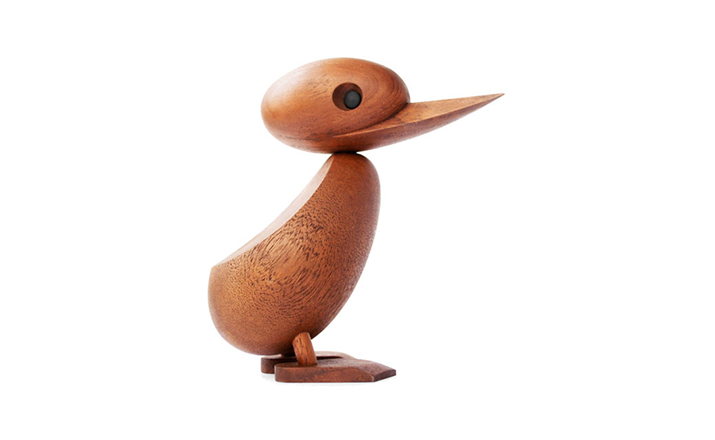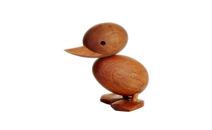 Wooden Duck And Duckling(木鸭与小鸭子)的制作灵感来源于真实的故事,故事回到了1959年丹麦哥本哈根的春天场景。正当人们与自然万物自由的伸展苏醒时,某天,在Frederiksberg街头出现了春天出游的鸭妈妈正带领着一群呱呱叫的可爱小鸭过马路的画面,随后,出现了一位警察为牠们指挥交通并顺利的过了马路,隔天报纸就刊登出这幅景像并引起广大的回响。这看似不可思议的美好事件却反应出丹麦人珍惜呵护自然的天性,在与之共处的过程中总是细微观察并不断的上演着触动人心的情景。在那重视手工艺的黄金50年代,全球正掀起了一股「斯堪地那维亚现代主义设计」风潮,丹麦设计大师Hans Bølling为推手之一,他因为鸭子事件的报导而深受感动,因此设计了手工木鸭,作品中不但展现出简洁有机的线条并揉合了精湛的手工艺技法,且将主题延伸至人文社会环境的关怀,以独特的事件观点触动人心,而这正是「斯堪地那维亚现代主义设计」所要反应出的设计观点。这款1959年份出品的手工木鸭,虽经历了半个世纪之久后再度问市,却依然深得人心。当二十一世纪的人们开始了解到美好的生活似乎越来越像个神话,而地球上的物种灭绝的速度比科技发明来得快且无解时,出现了回归自然与环保的声浪,人们因此更懂得珍惜自然以及传统手工艺的经典设计,一种无法被工业化所取代的价值感与慰藉。