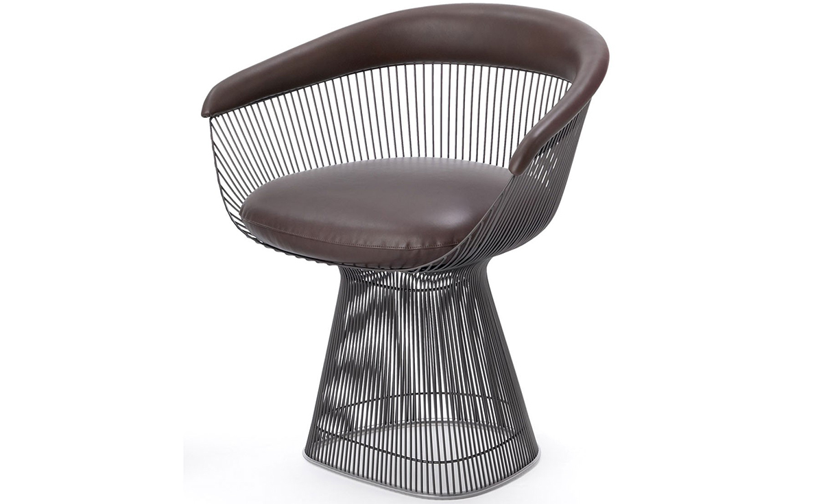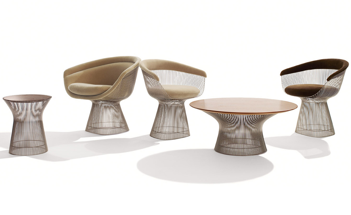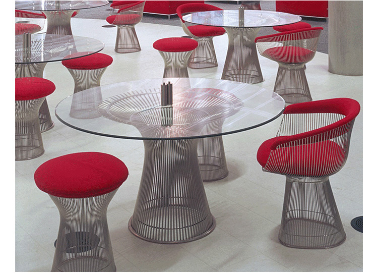 1966年榮獲 American Institute of Architects International Award 美國建築協會國際大獎的 Platner Chair,在設計師 Warren Platner 的創意下,將鋼絲雕塑轉化成一系列收藏級的傢俱,創造了現在被認為是當今時代的設計圖標。