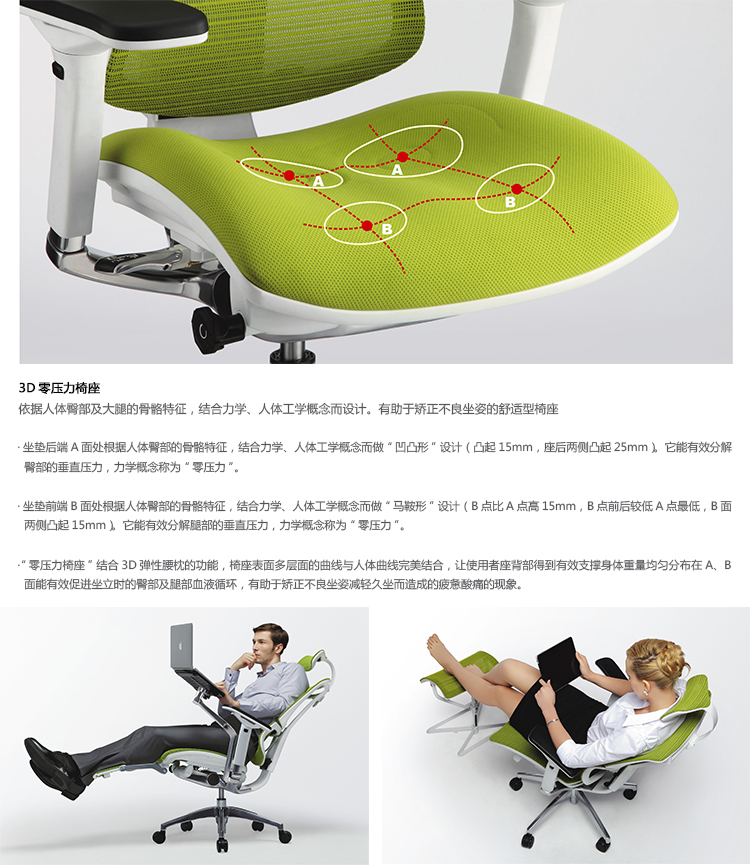 独特的3D弹性腰枕支撑系统,给予腰部三维动态的全方位的支撑;