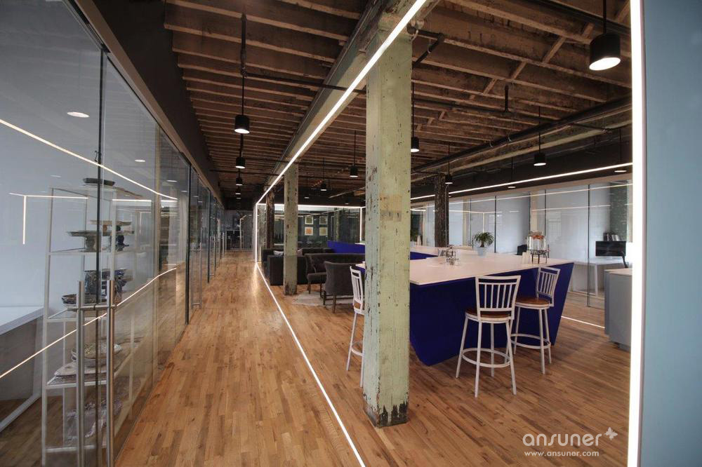 这处面积约4330平方米的联合办公场地,位于布鲁克林区的郭瓦纳斯(Gowanus),一个成熟的工业区。近年来对城市基础设施的改造与建设让这里恢复了社区活力,涌现出大量艺术家的工作室、潮流餐厅和公寓大楼。沿着郭瓦纳斯运河,随处可见临时搭建的艺术画廊和另类音乐场所。
