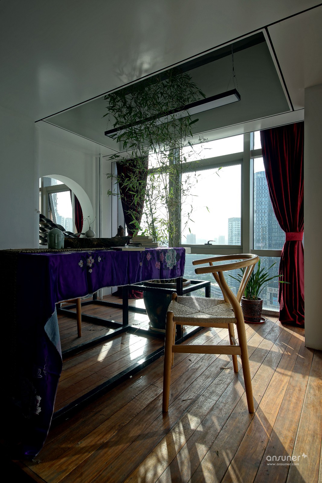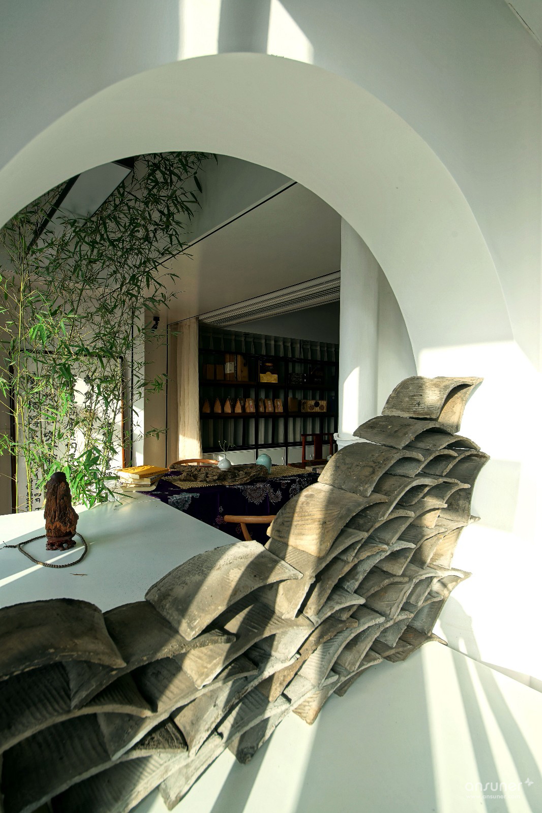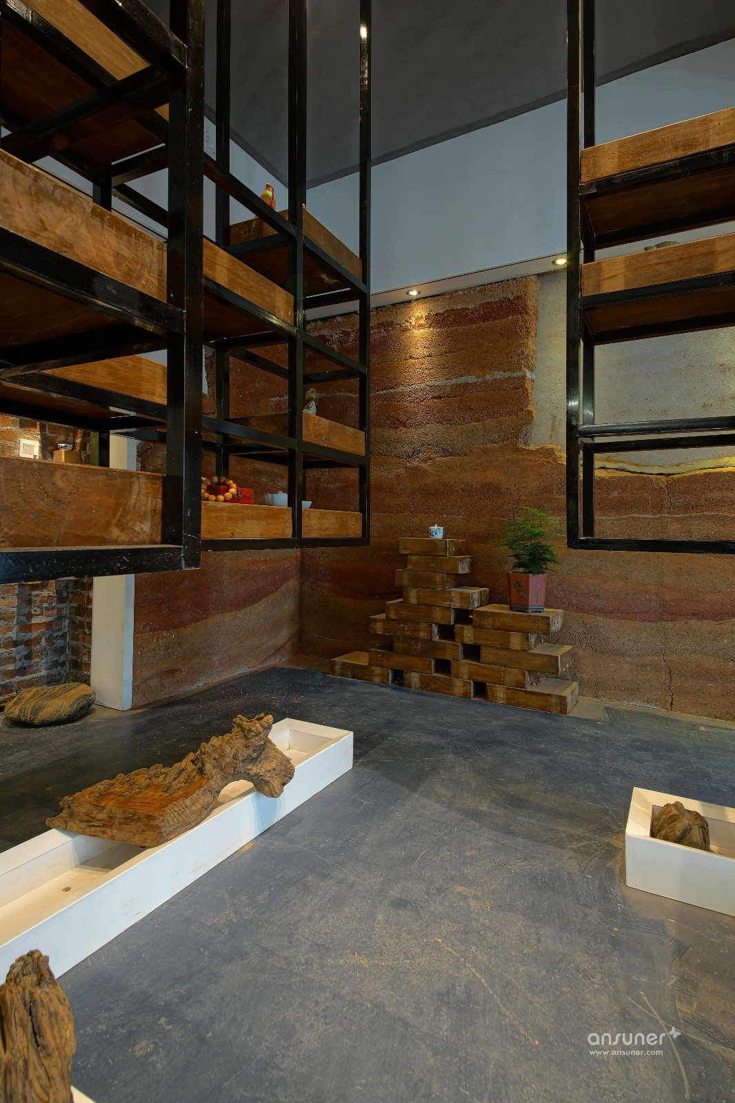 钢筋水泥的生活是城市的写照,泥巴、瓦片、木头是桃园生活的表象。在都市营造诗意的栖居,让内心宁静、自然,是本案设计的初衷。