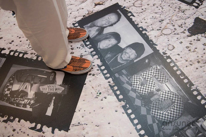 Vans(范斯),是1966年在美国加州创立的原创极限运动潮牌,以原创设计的滑板鞋、冲浪鞋、BMX鞋及滑雪鞋起家,致力于发展原创性的同时支持全世界的板类和车类运动。棋盘格、华夫底以及侧边条纹,已成为Vans的标志特征,并成为本案的装饰元素。