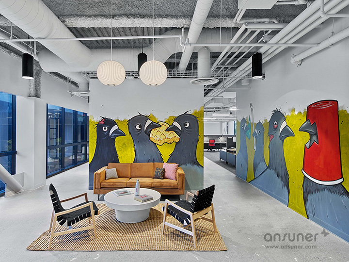 音乐在Vans拥有深厚的根基,这里的“果酱&游戏室”配有很多乐器,允许员工随时来一段即兴表演或展开歌喉爆吼。Vans对艺术的痴迷同样令人难以置信,墙面上到处是经 典的滑板艺术图形、壁画和街头涂鸦,带来与众不同的潮流艺术体验。